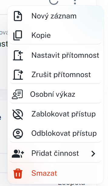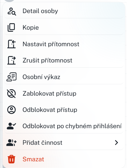 Kontext menu - obsahuje stejné možnosti jako ze seznamu osoby