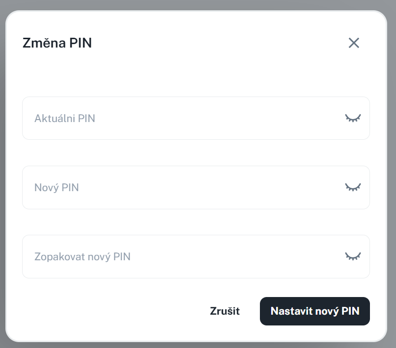 Kliknutím na tlačítko Nastavit nebo hvězdičky (znamená, že tam je již nastavená PIN) se otevře dialog pro zadání PINU.