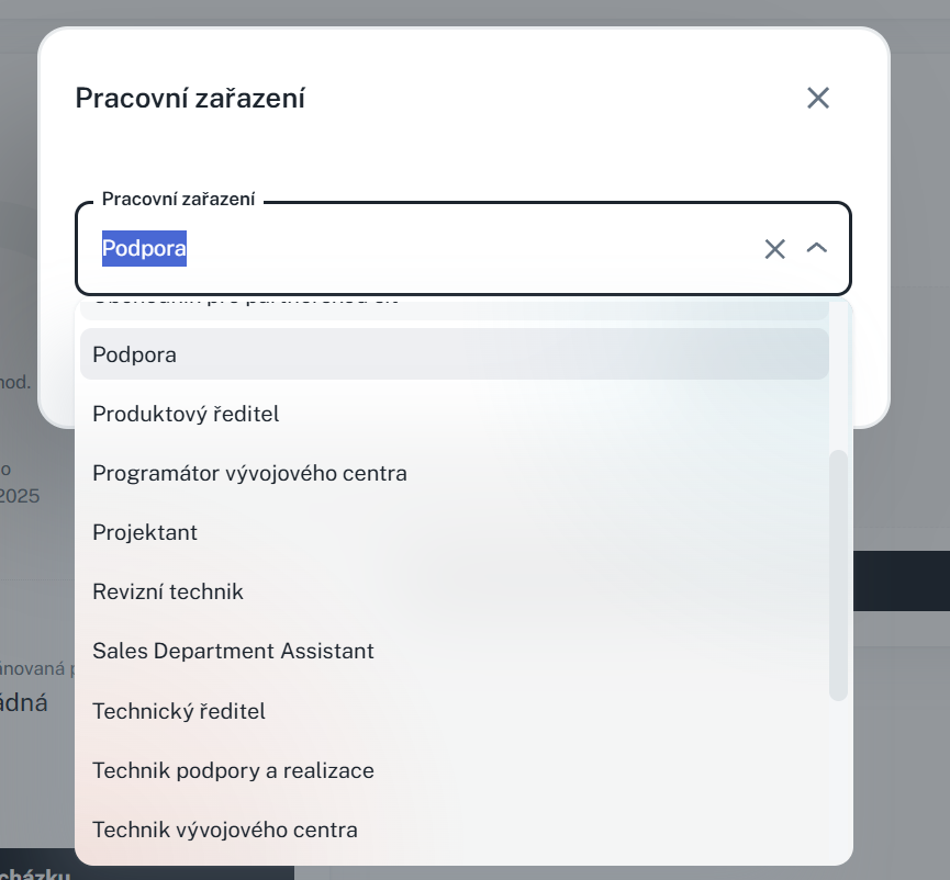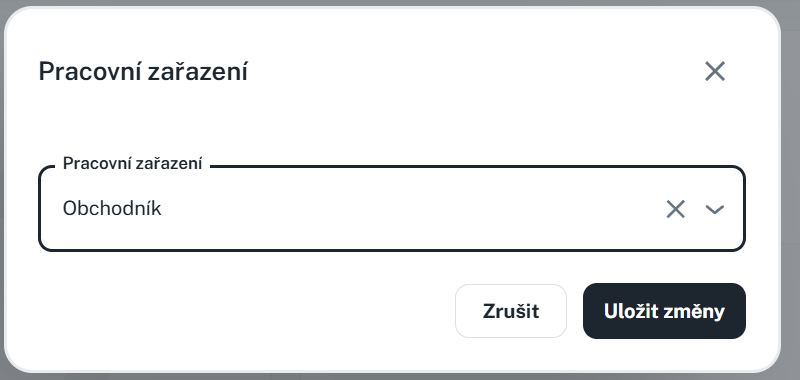 Kliknutím na tlačítko Nastavit nebo na již přiřazené zařazení se otevře okno, ve kterém vyberete, do jakého pracovního zařazení chcete osobu přiřadit.