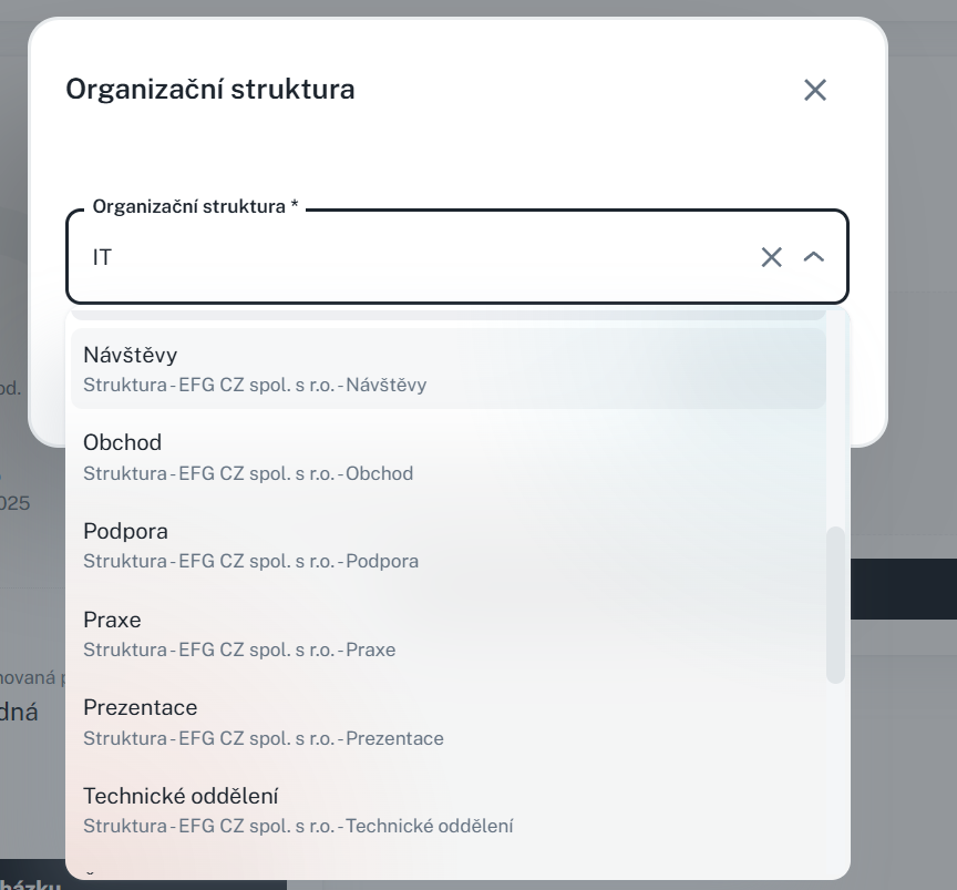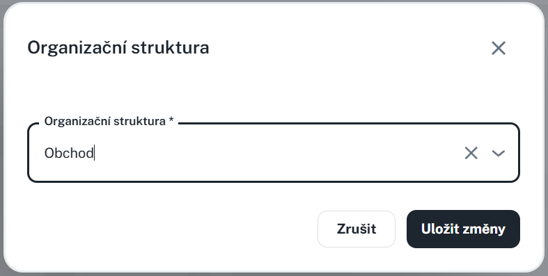 Kliknutím na tlačítko Nastavit nebo na již přiřazenou strukturu se otevře okno, ve kterém vyberete, do jaké struktury chcete osobu přiřadit.