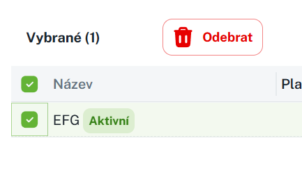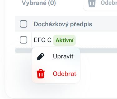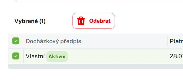 Pro odstranění slouží také kontext menu, případě po označení několika předpisů se zobrazí tlačítko “Odebrat“.