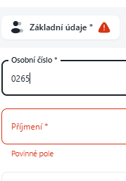 Základní údaje - údaje osoby, pracovní jednotky atd…