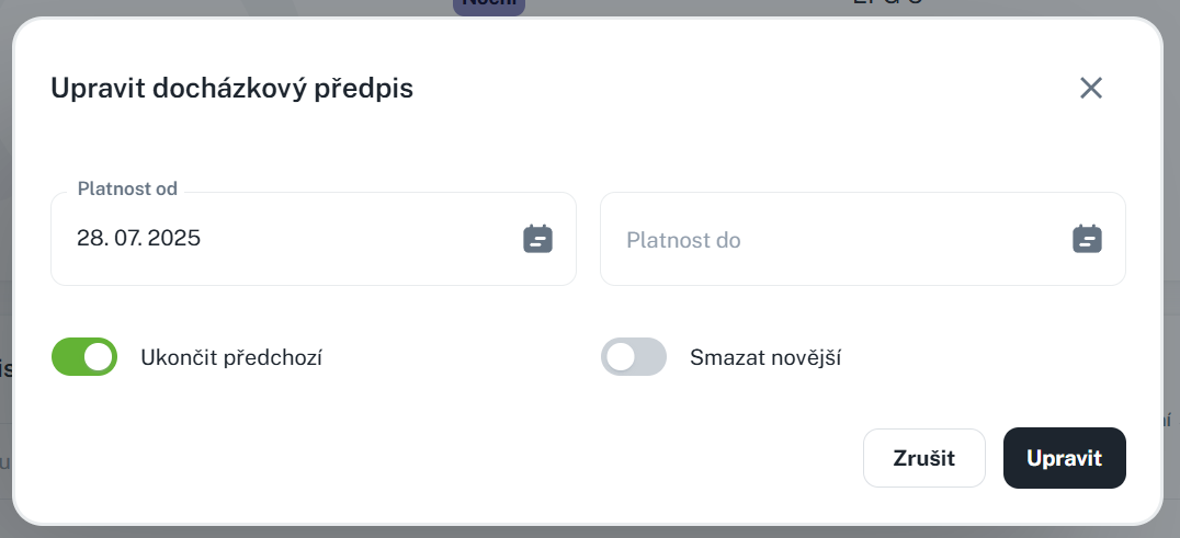 U předem daného předpisu je možné upravit pouze platnost Od - Do. Do editace se dostanete skrze kontextové menu skrze 3 tečky nebo pravý klik na předpis.