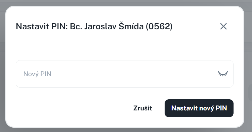 Pokud byste chtěli nastavit PIN pro momentálně přihlášenou osobu, musíte kliknout na ikonku nahoře vpravo a zvolit “Změnit PIN“.
