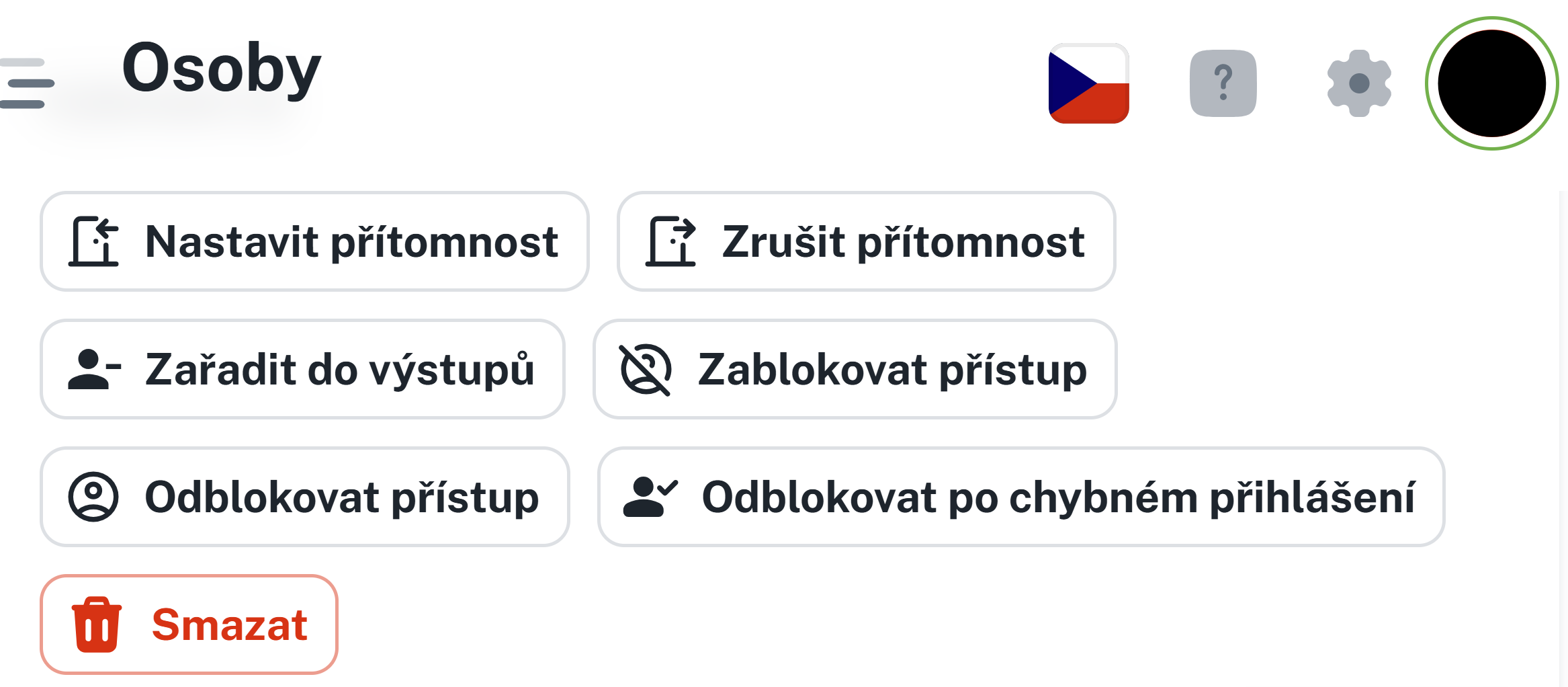 Při označení jedné a více osob máte k dispozici několik tlačítek: