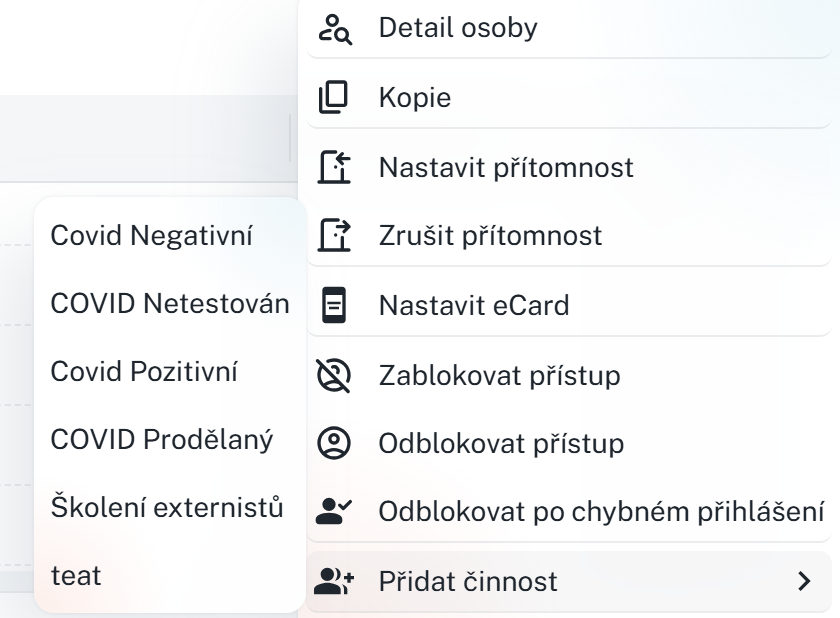 Osobě můžete přiřadit činnost - slouží k evidenci, například školení, či prodělaný COVID.
