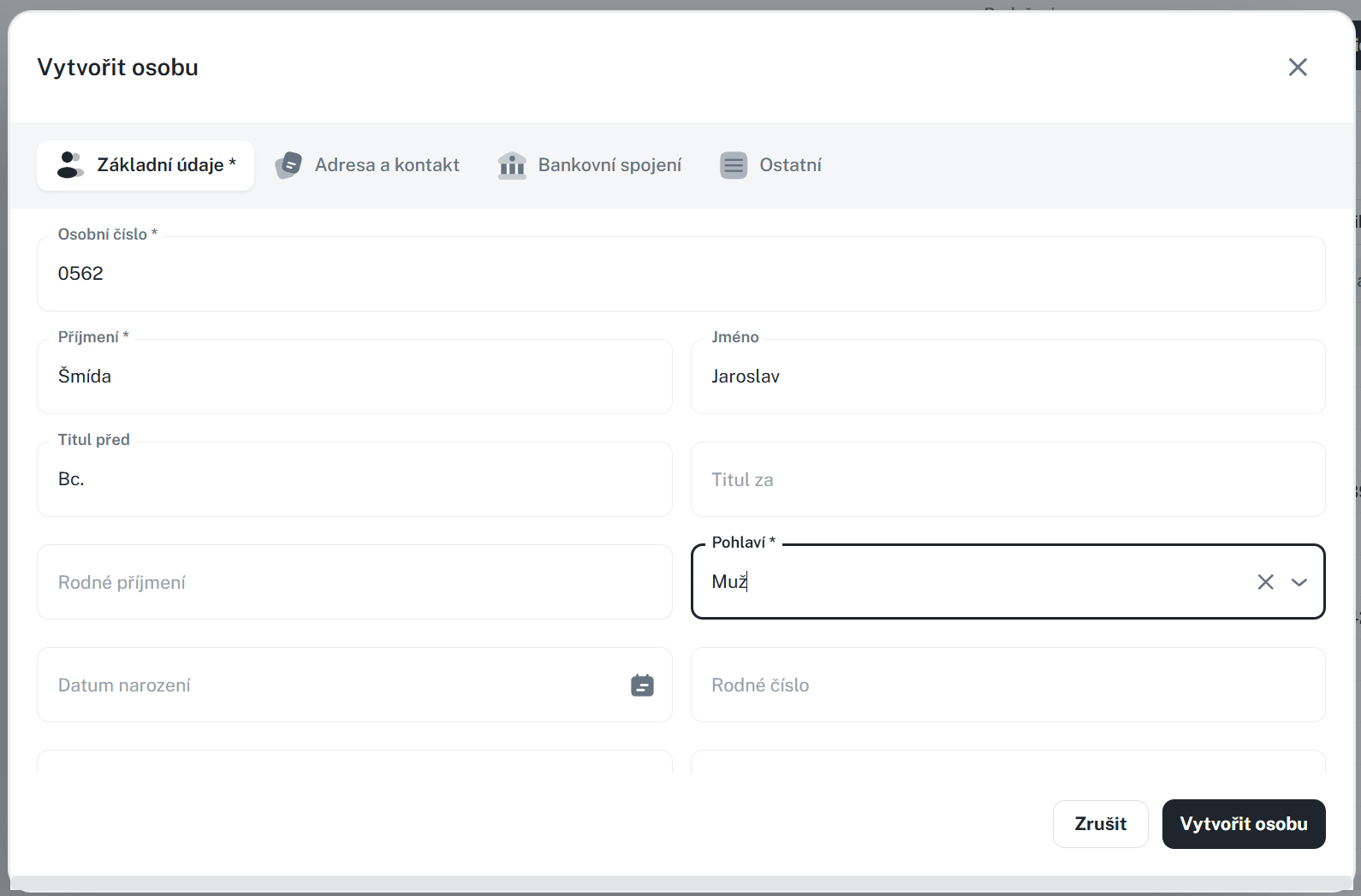 Po vyplnění údajů stačí kliknout na Vytvořit osobu