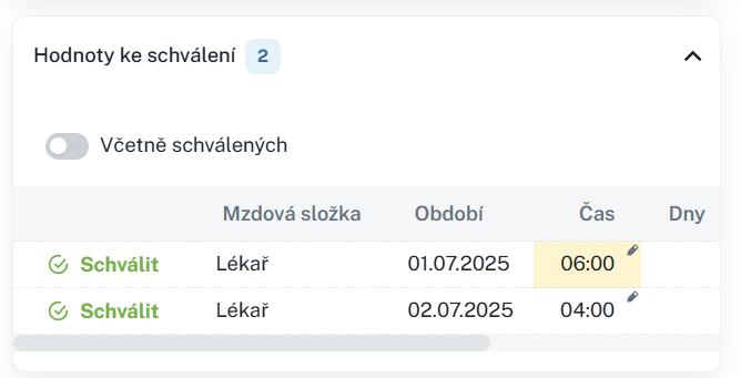 Hodnotám ke schválení - slouží ke schválení hodnot