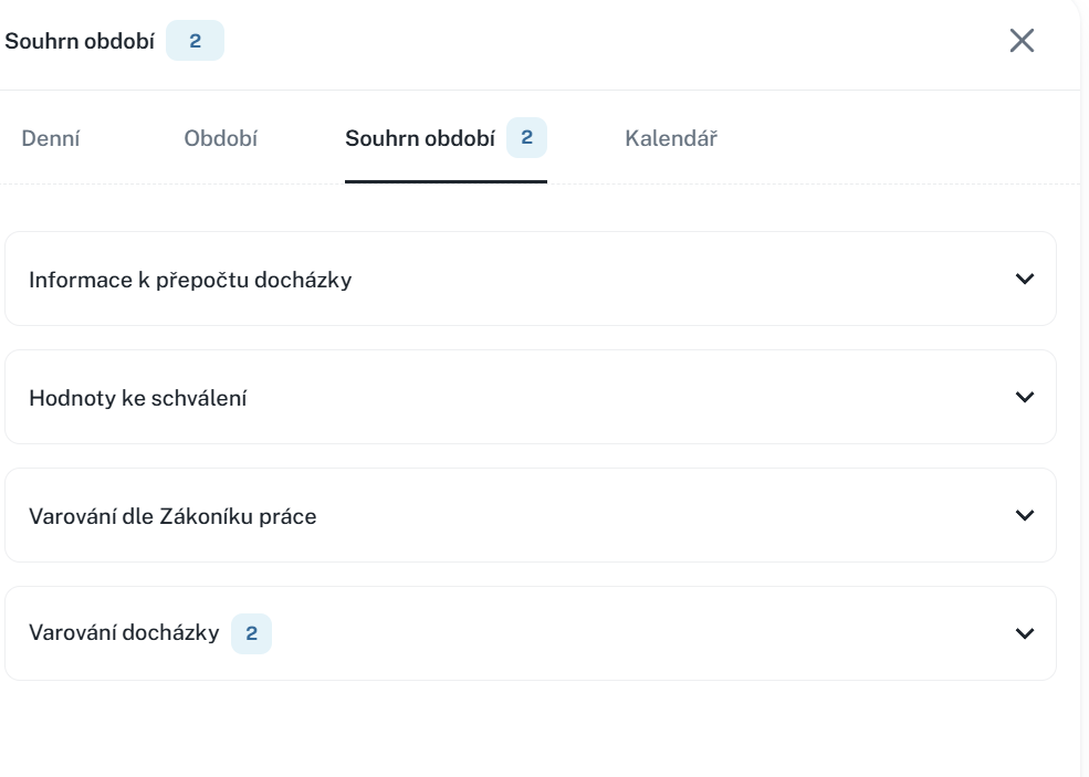 Jak se vyznat v bočním panelu a jeho upozorněních – souhrnné informace o stavu období, varování dle zákoníku práce apod.