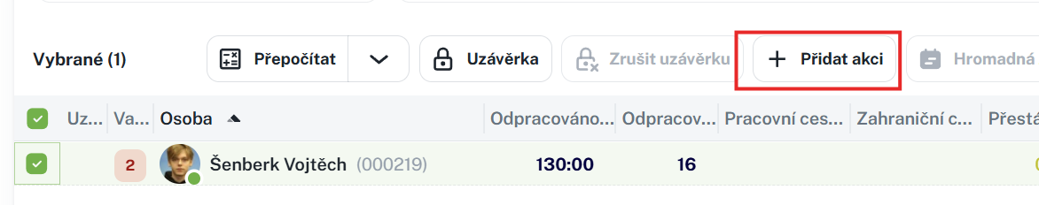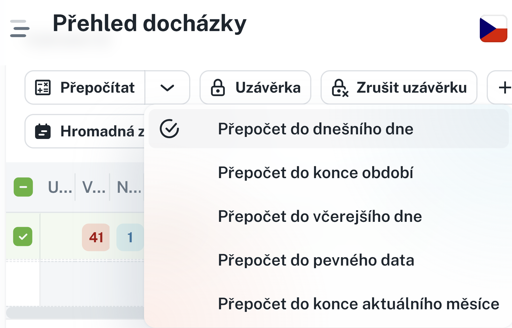 Příklad použití: Zaměstnanec má poslední 2 týdny v měsíci dovolenou a potřebujete jeho docházku uzavřít nyní a dále ji zpracovat ještě před koncem daného období.