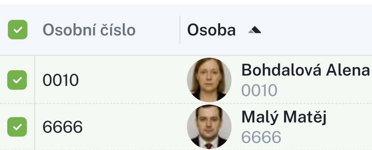 Před spuštěním funkce Přepočítat je nutné nejprve označit osoby, u kterých chcete funkci využít (můžete označit všechny najednou pomocí zaškrtávacího pole v levém horním rohu tabulky).