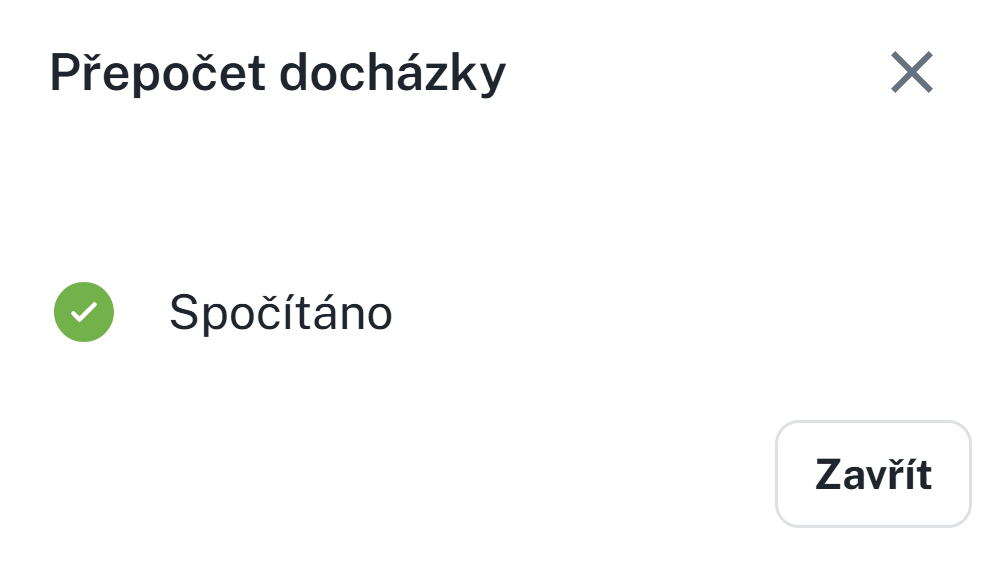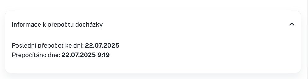 Přepočtu docházky - datum posledního přepočtu společně s datumem přepočtu docházky.
