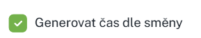 Generovat dle směny - většinou se používá při přidávání průchodů na více dní, tato funkce zajistí, že se časy vygenerují dle předem naplánované směny.