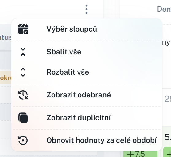 Obnovit hodnoty za celé období - Obnoví původní hodnoty za celé období. Funguje jako vrácení ručních změn.