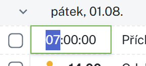 Čas - po úpravě údaje stačí kliknout mimo pole a čas se automaticky aktualizuje