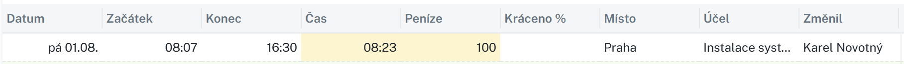 Čas začátku a konec se počítá automaticky ze zadaných začátků a konců pracovní cesty (průchody).