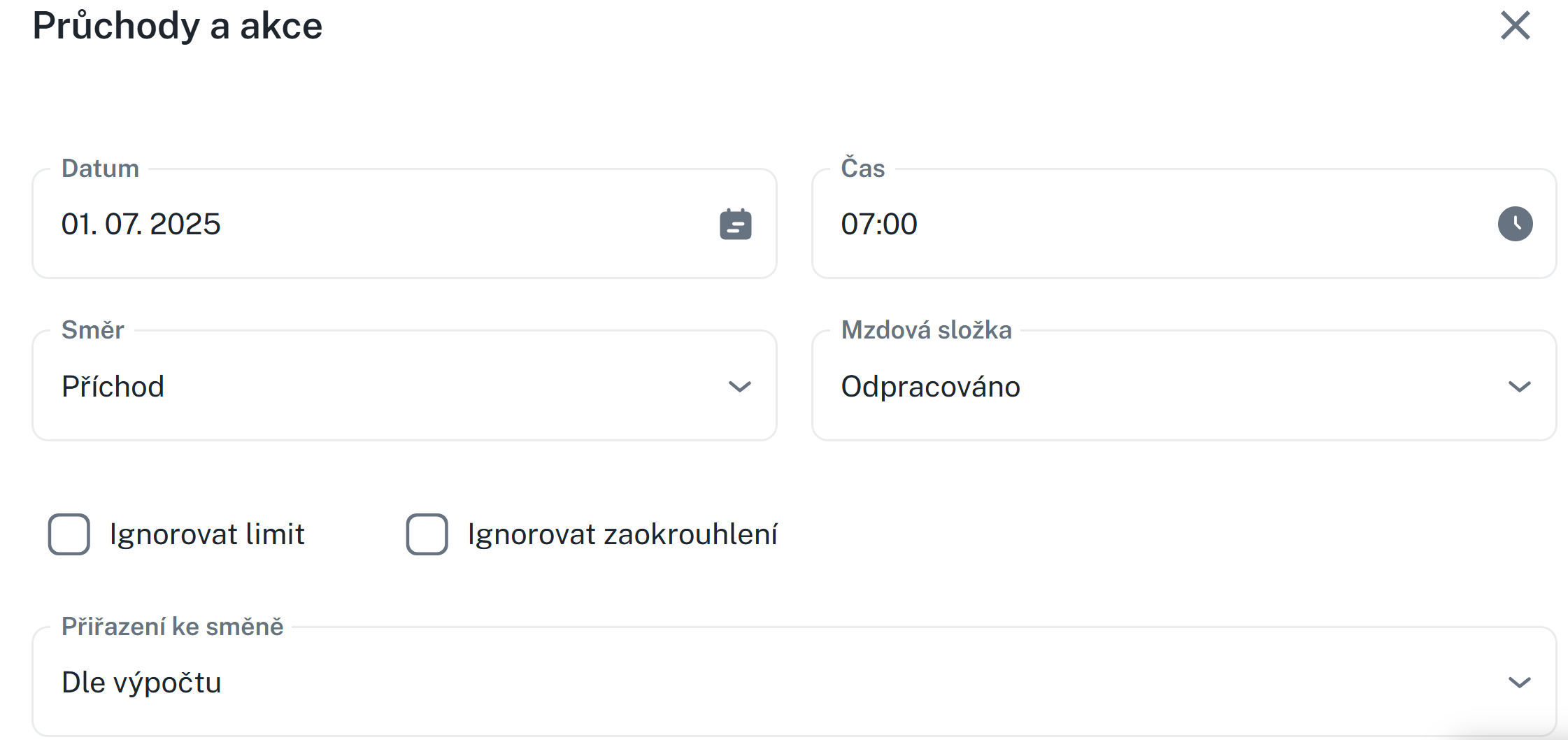 Ignorovat limity - u daného průchodu ignoruje nastavený limit u směny, na tuto funkci se váže příznak. Křížkem poté vrátíte průchod do původního stavu.