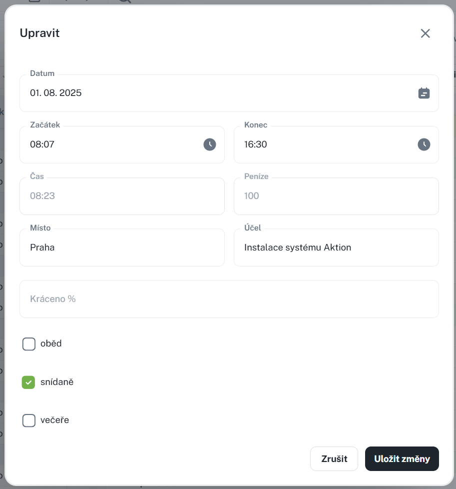 Do editace pracovní cesty se dostanete skrze kontext menu.