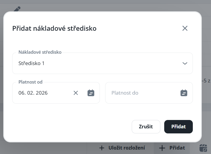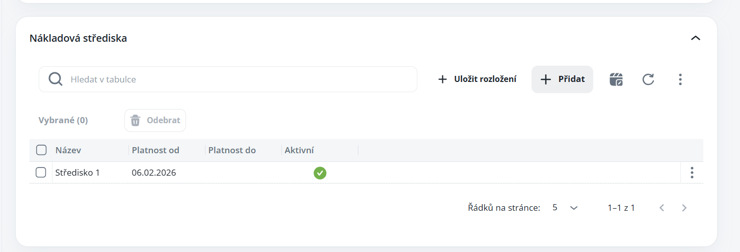 Slouží k přidání střediska do struktury, které se následně zobrazí v plánu kapacit včetně počtu pozic k dané struktuře. Vždy může být pouze 1 platné středisko.