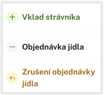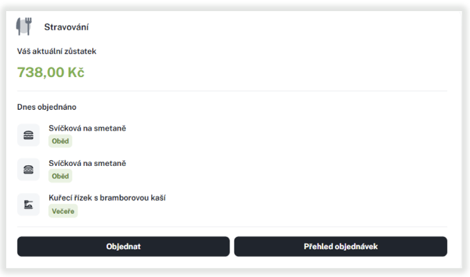 Tlačítka „Objednat“ a „Přehled objednávek“ vás přesměrují přímo do hlavní agendy Objednávka jídla.