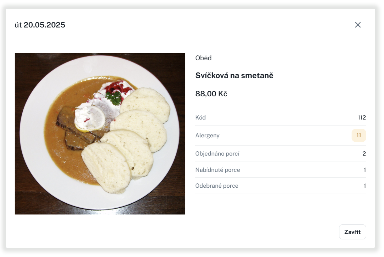 Počet vydaných porcí – kolik porcí již bylo vydáno.