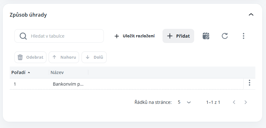 Výběr způsoby úhrady ze stejnojmenného číselníku, které budou při zadání plnění na výběr. Pouze informativní charakter pro potřebu evidence, neovlivňuje výpočty apod.