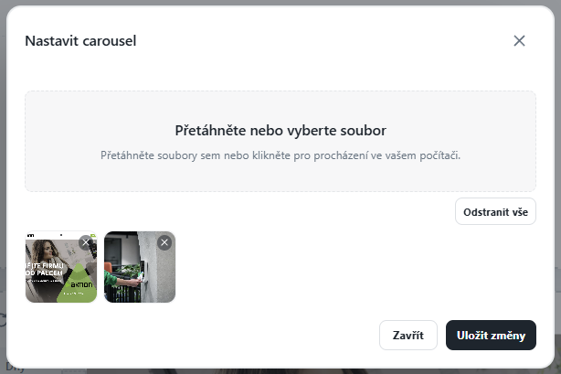 Některé widgety (např. Carousel, Banner, Webová stránka) mají další možnosti nastavení přes tři tečky – např. obrázky, odkazy, barvy.