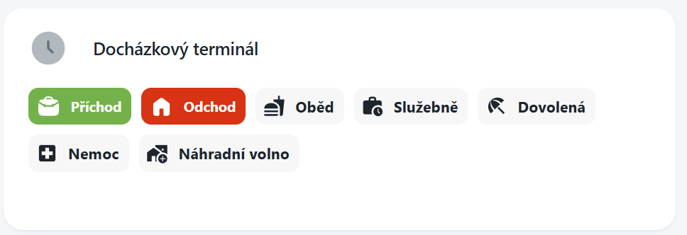 Slouží k rychlému zadávání docházkových průchodů přímo z dashboardu – obdobně jako na fyzickém terminálu.