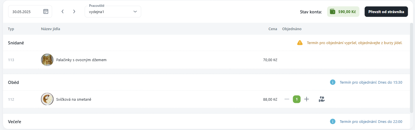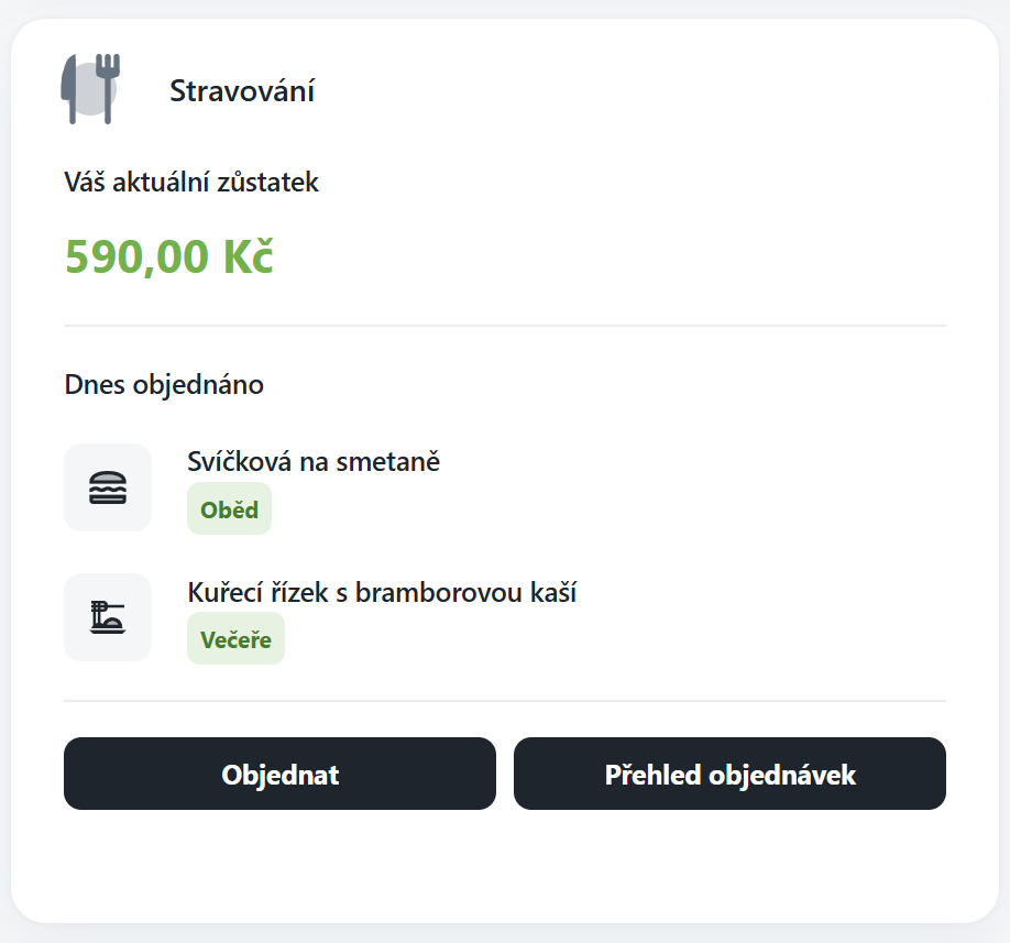 Slouží pro práci s objednávkami a přehledem stravování: