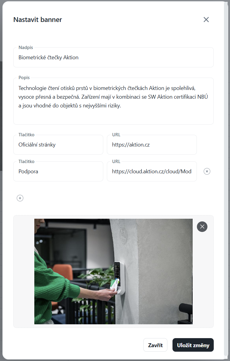Banner slouží jako označovací nebo informační widget, který může upozorňovat zaměstnance na důležité informace, novinky nebo rychle zpřístupnit externí i interní odkazy.