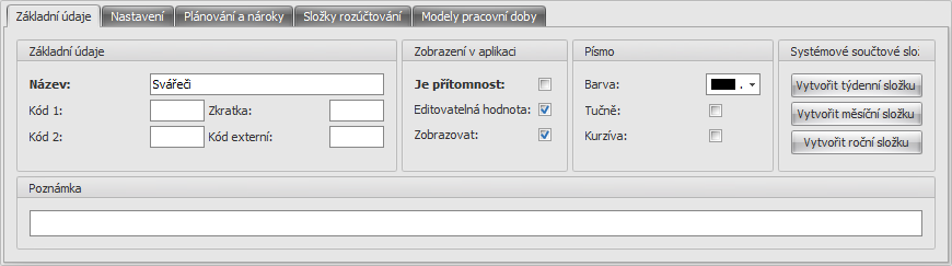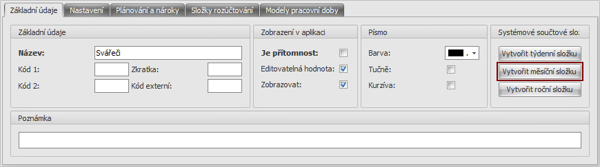 Lze použít pouze pro mzdové složky typu Ztížené prostředí. Tu si musíte nejprve založit v agendě Mzdové složky, viz níže, prozatím je nutné využit k nastavení software Aktion.NEXT.