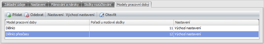 Tlačítkem přidat vyberte Pracovní modely, u kterých se má příplatek počítat. Je možné vybrat všechny, protože se bude počítat jen u těch osob, které jsou členy dané Pracovní jednotky.