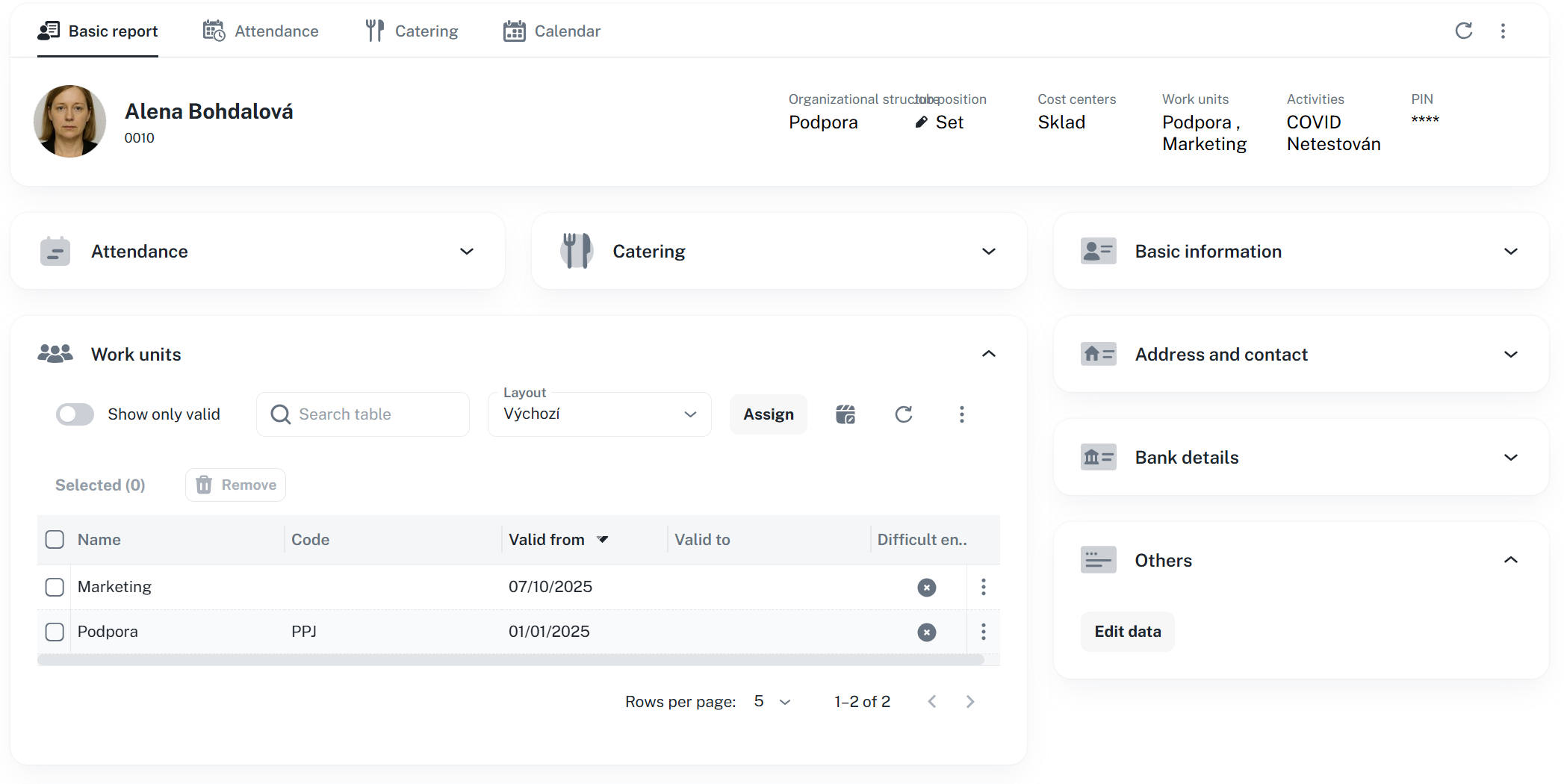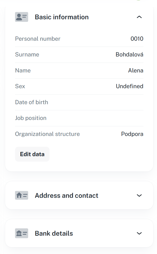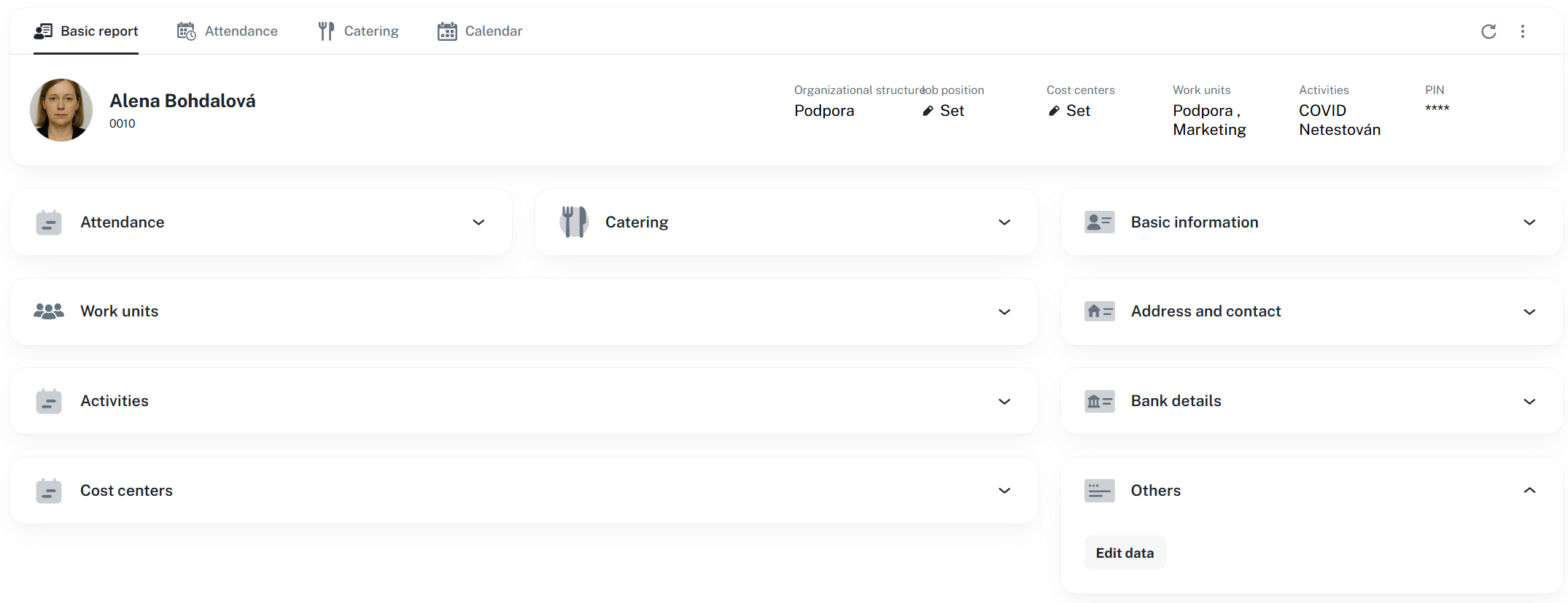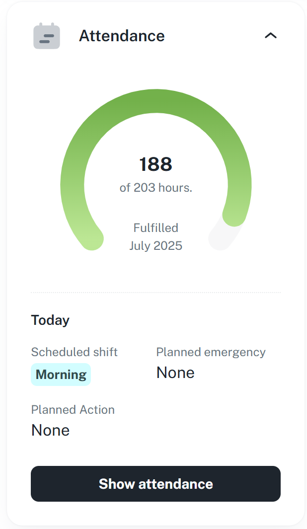 Similarly to attendance, a widget is also displayed on the basic data tab.
