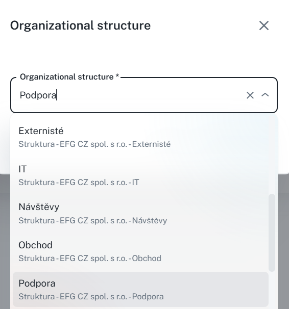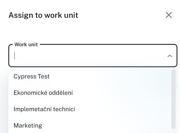 By clicking on the Set button or an already assigned work unit, a list will open. The same list is also available as a widget below in the person’s detail.