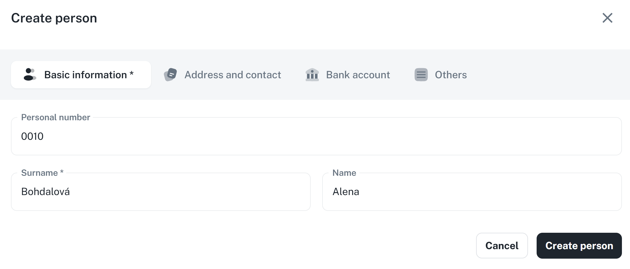 If you need to modify a person's information, open the relevant widget and click the Edit button. You will be shown the same form as when creating the person, where you can update the information as required.
