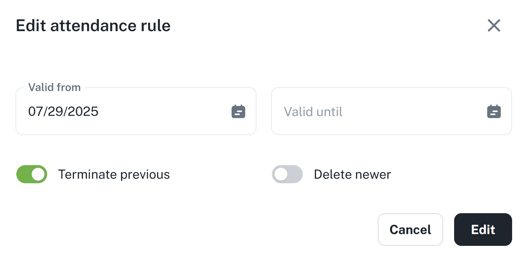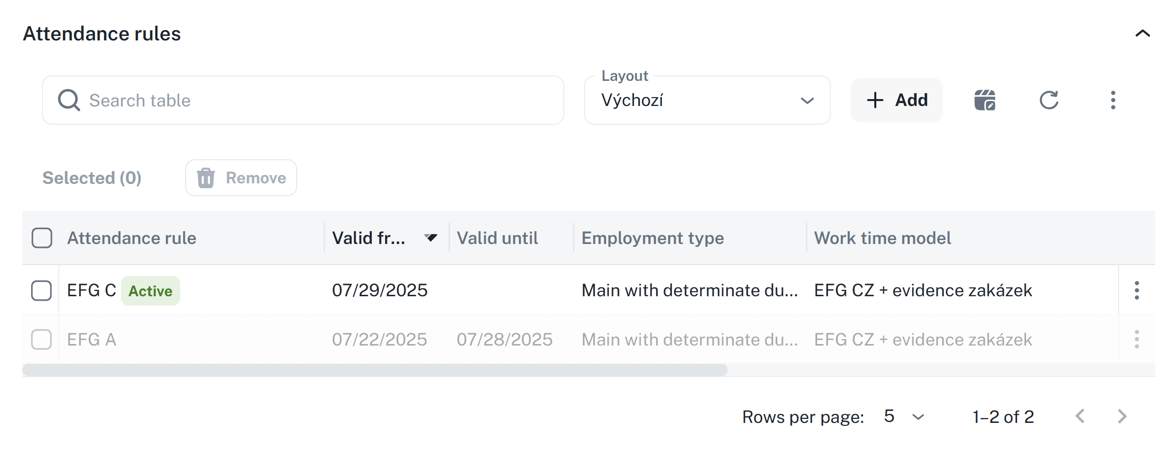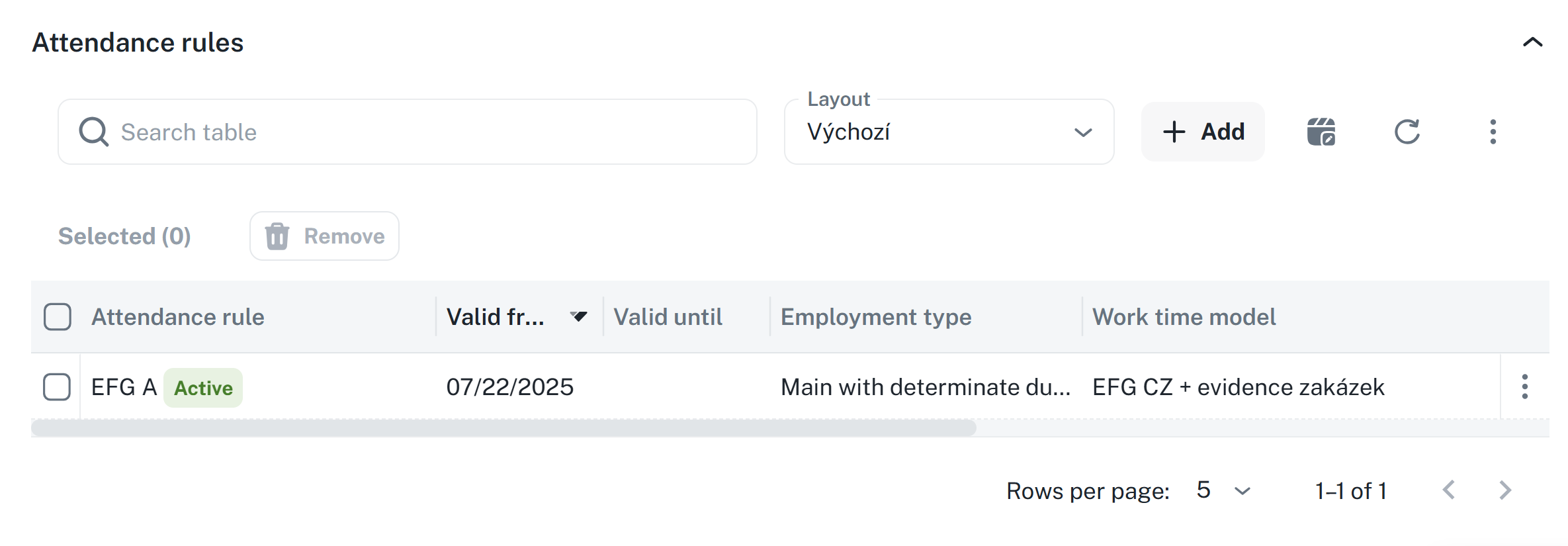 Attendance regulations - simply click on the Attendance regulations field → select one of them and the other details will fill in automatically. The only thing that will need to be specified is the validity from when or, if applicable, until when the regulation should apply.