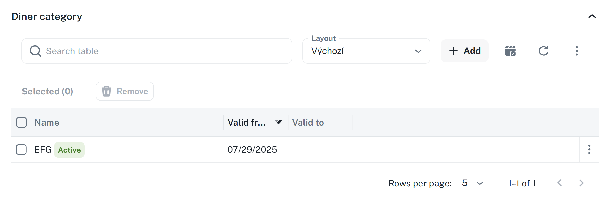 It is possible to modify only the validity From - Until, or to completely remove the category from the record. The context menu or the Remove button is used for modification, which becomes available after selecting the relevant category.