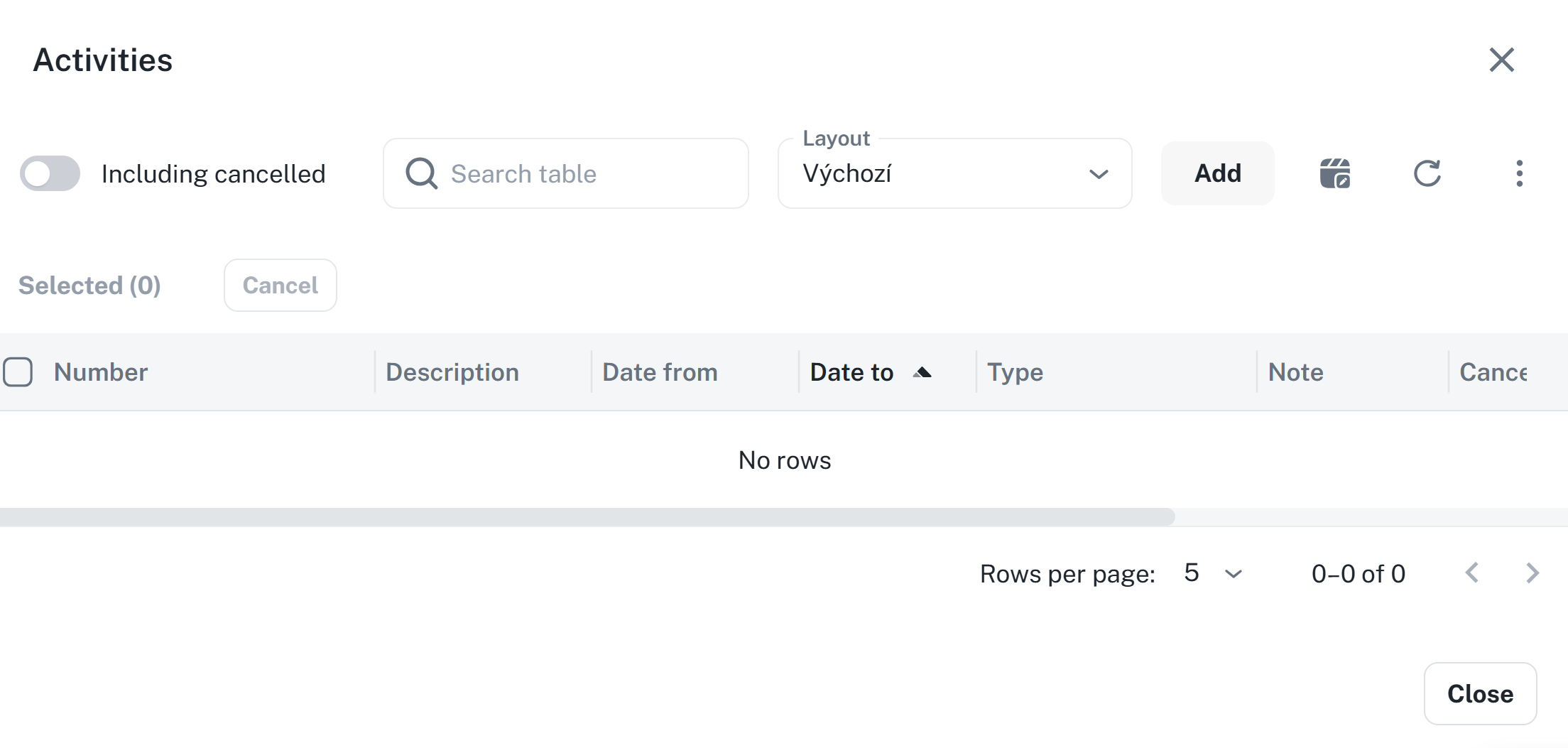 By clicking on Add, a window with available activities will appear. After selecting an activity, set the validity date, and if required, the expiration date as well. Then click on Add → the activity will be assigned to the person and will appear in the list.