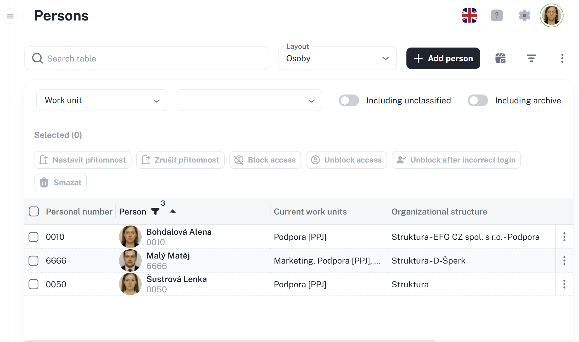 The list serves for efficient management of persons, including bulk addition, copying, and performing other actions.