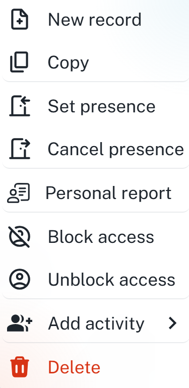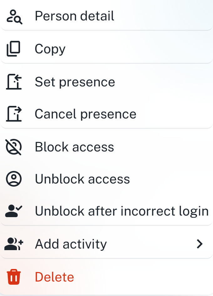 These same and additional options are also available from the context menu - by right-clicking on the given person, or by clicking the three dots on the right (see image below).