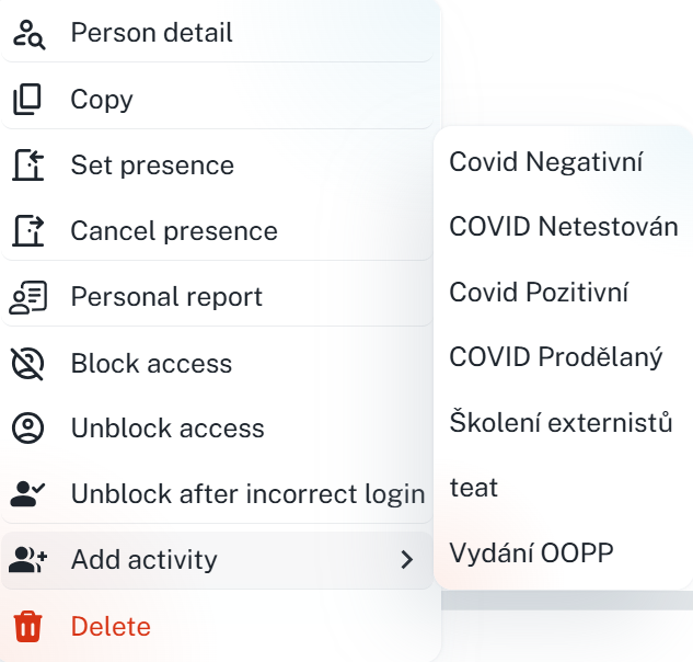 You may assign an activity to a person – this serves for record-keeping, for example, training or previously contracted COVID.