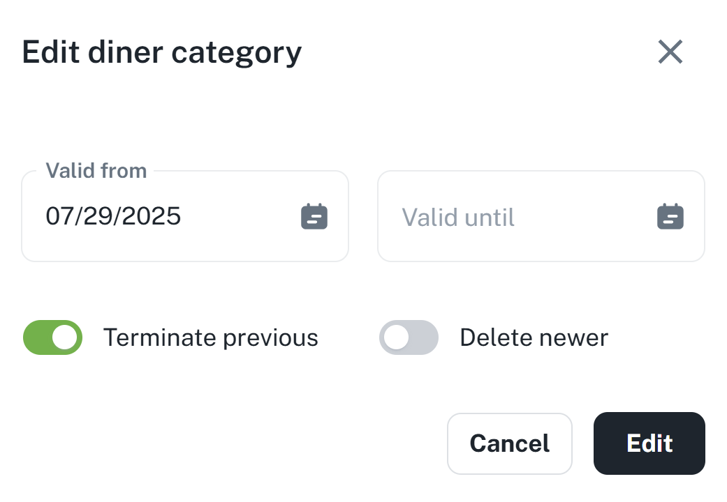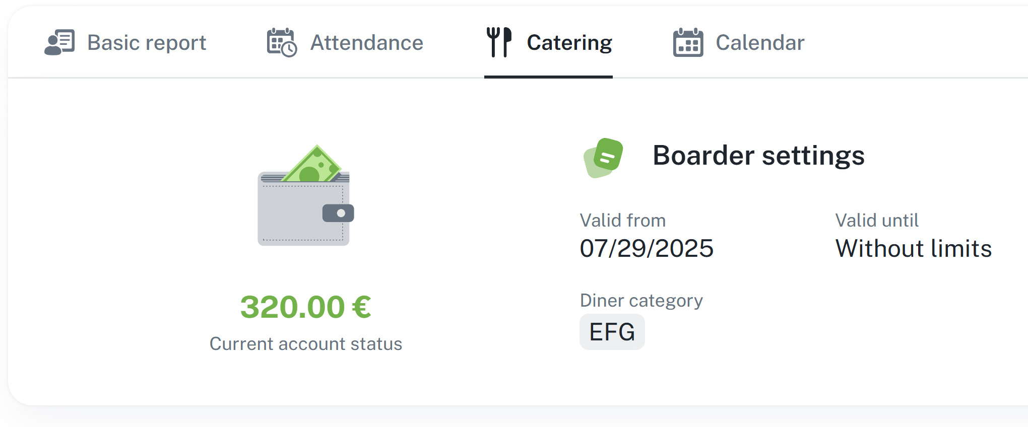 If a person has a valid meal category and you have the appropriate authorization, it is possible to order food on behalf of that person. Under the section Diner category, there is another section Order through which it is possible to order portions for the respective person.