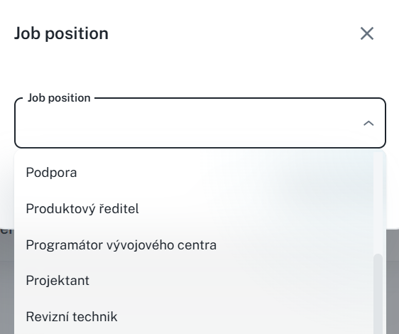 By clicking the Set button or the already assigned position, a window will open where you may select the job position to which you wish to assign the person.