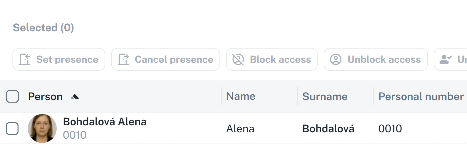 Set/Cancel presence - sets or cancels an employee’s presence in a given zone for a specified time period.