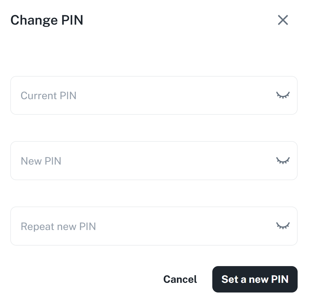 By clicking the button Set or the asterisks (indicating a PIN is already set), a dialog for entering a PIN will open.