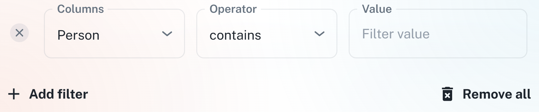 After activating, a field for filtering will show up, where you may set one or more conditions.