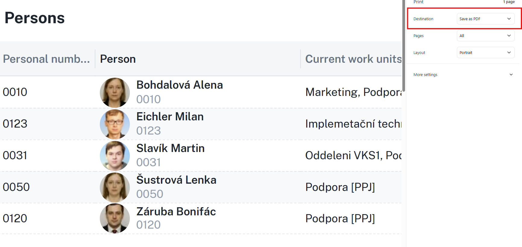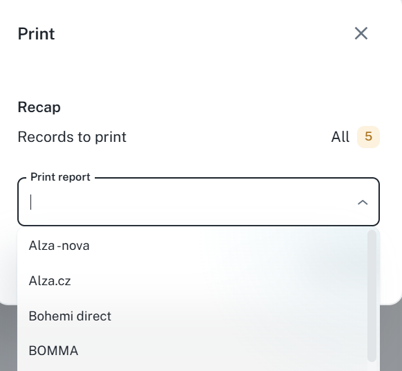 Print - After clicking, a dialog will be displayed, in which it is necessary to choose a print report. After clicking Print inside the dialog, you will see a preview and print options.