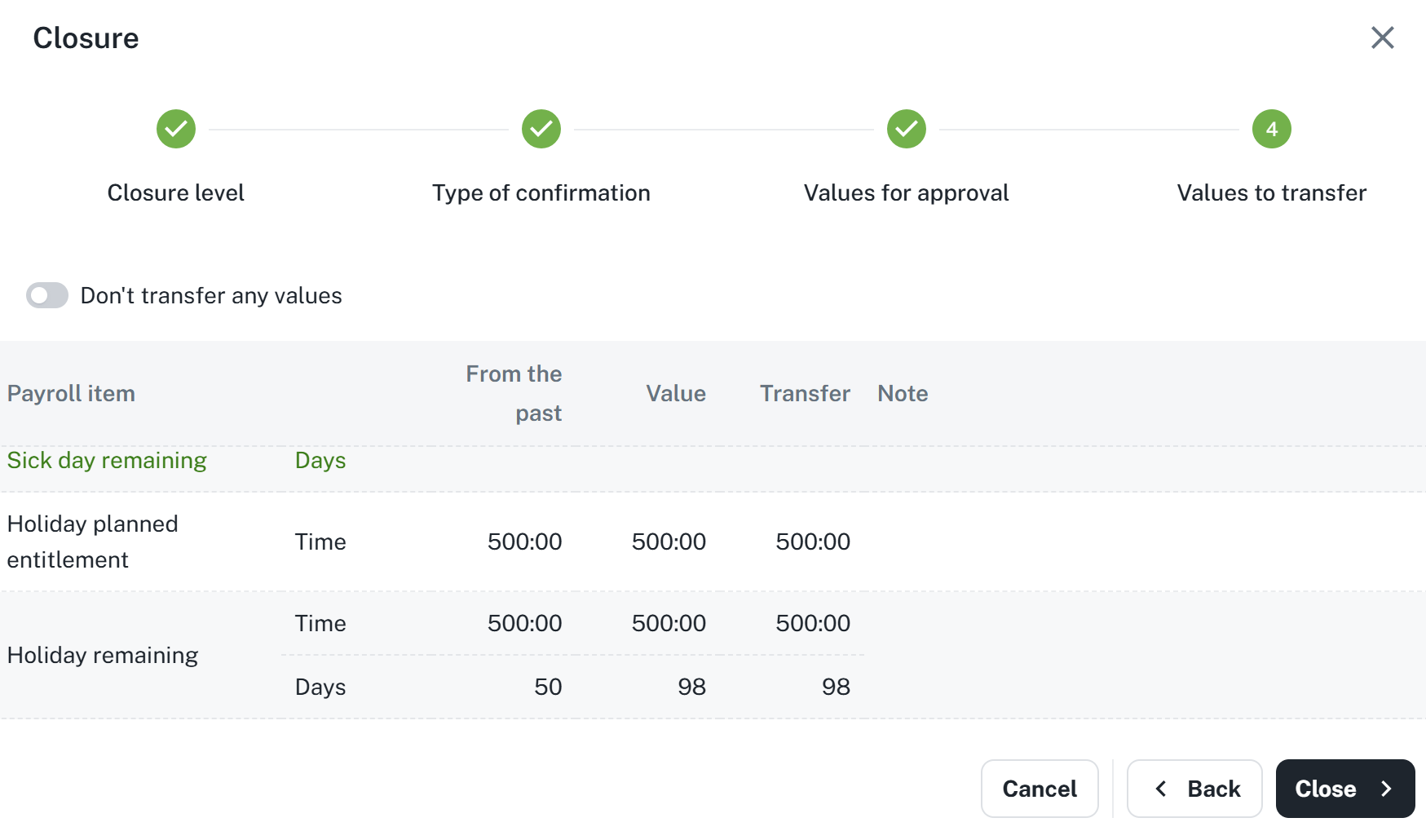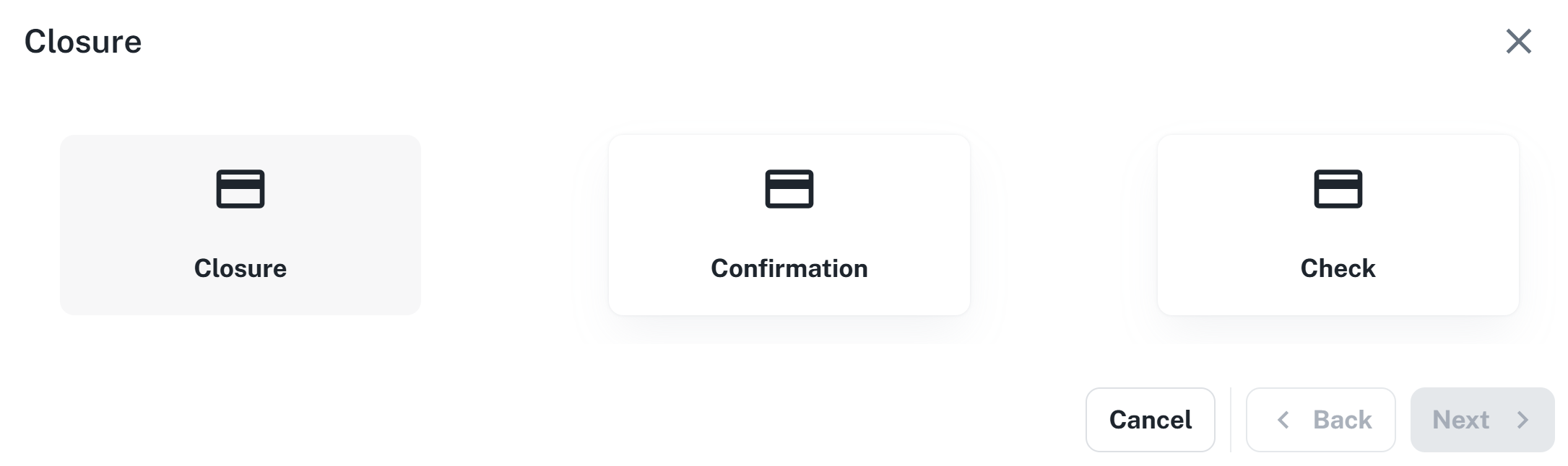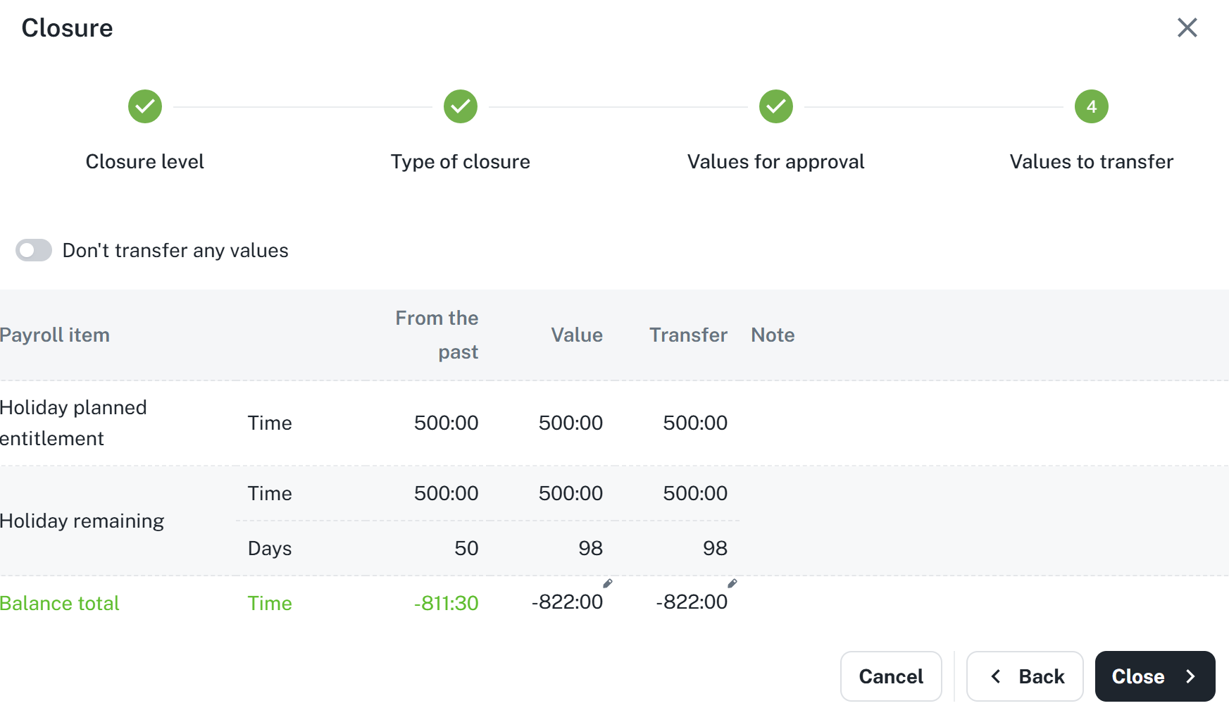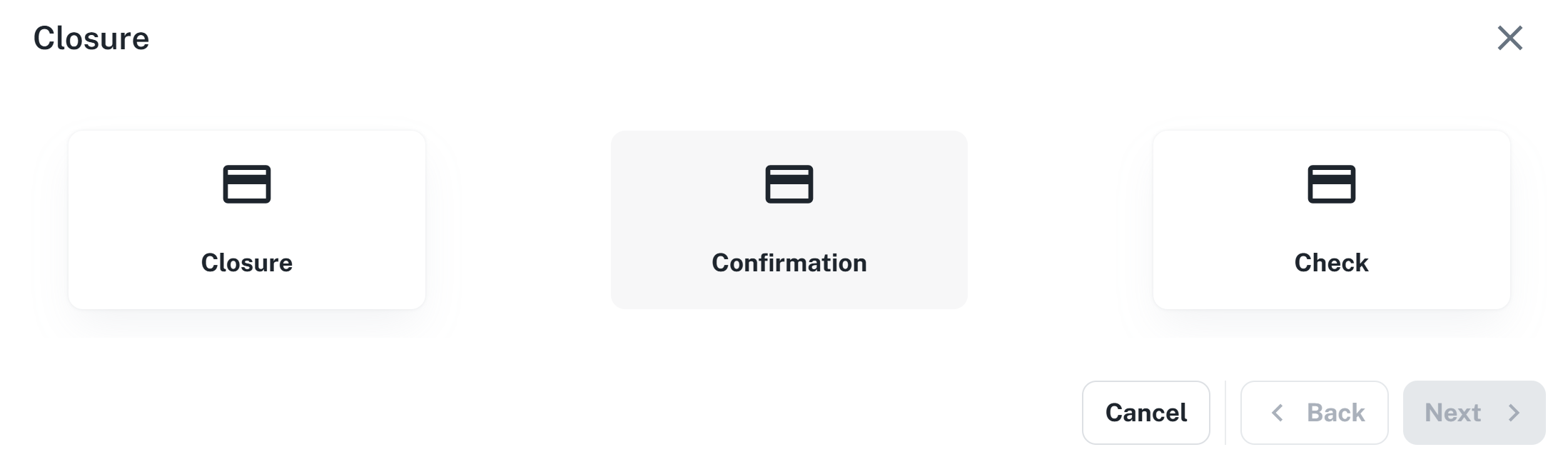 If you selected Period closure, review the displayed summary and click Close. If you selected Partial closure, the confirmation should be performed automatically.
