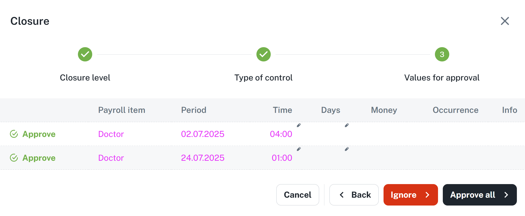 Closure is used to close (lock) attendance data of one or more people at once. Closing can be done in bulk through Attendance report or right in the personal report of a selected person.