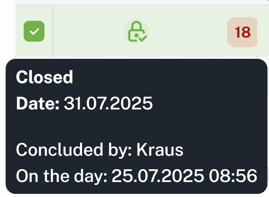 After successful closure, you will see an icon in the Closure column for the person. When you hover over the icon with your mouse, details will be displayed.